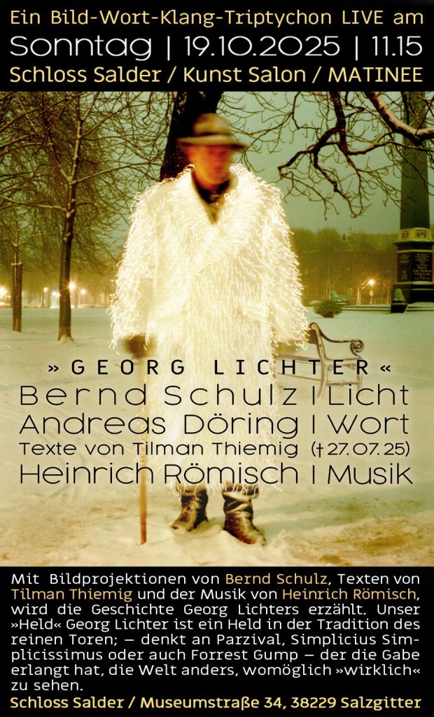 Im Rahmen der Ausstellungsreihe Salon Salder in Salzgitter gibt es am So, 19. Oktober die Matineé mit dem Programm „Georg Lichter“: