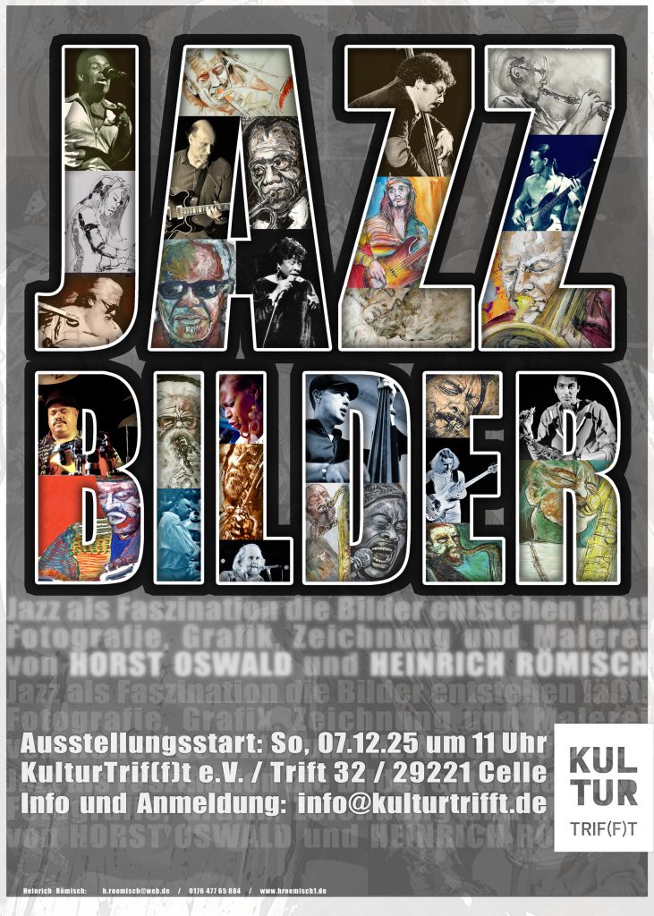 Im Dezember geht die Ausstellung nach Celle. Im KulturTrif(f)t wird sie am 07.12. um 11 Uhr mit dem Konzert der Mingus Tribute-Band OH, MINGUS GO! eröffnet.