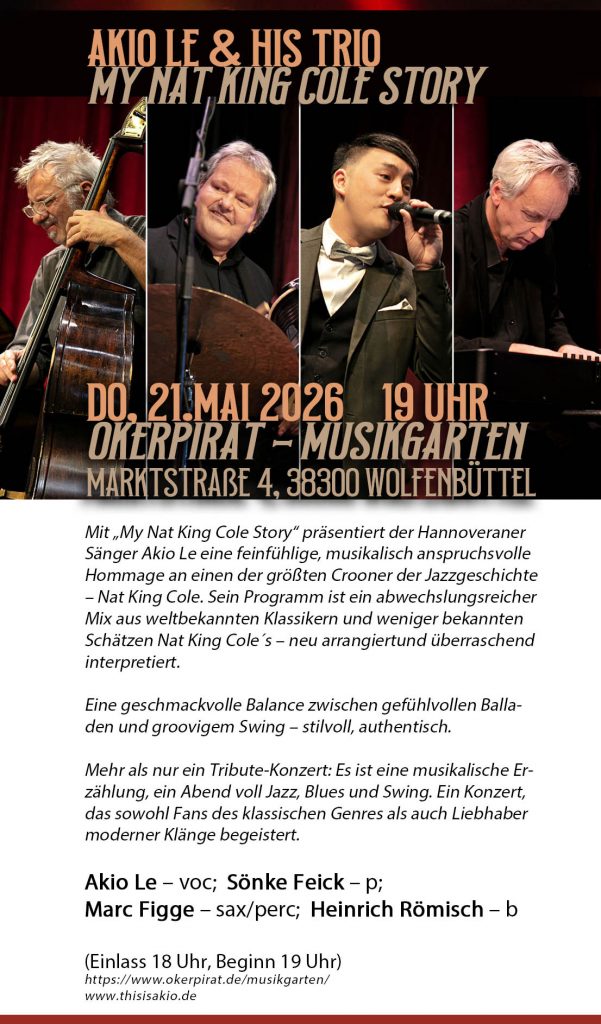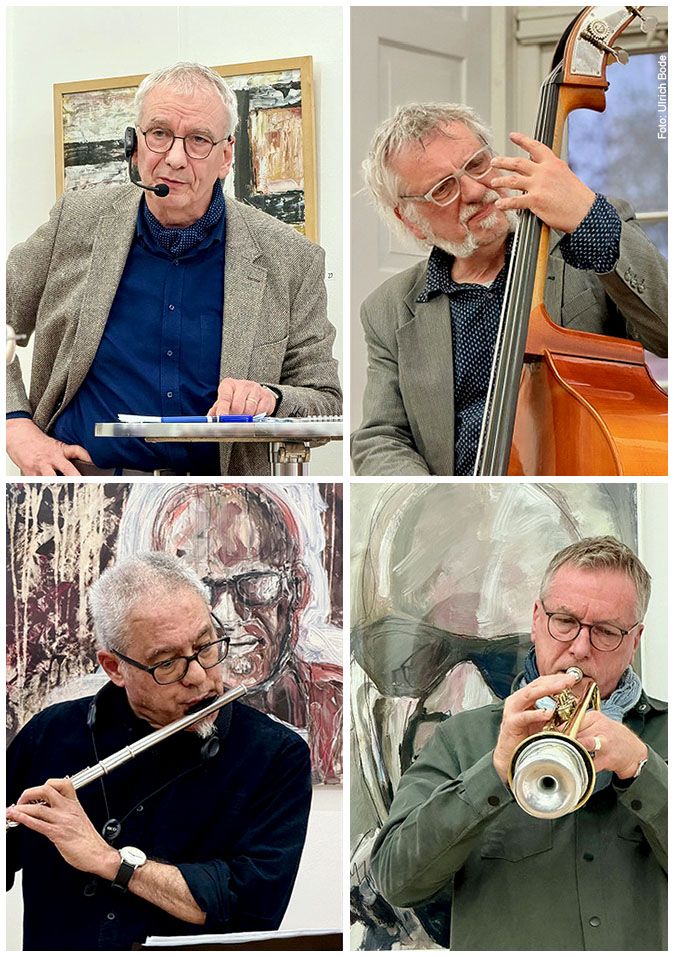 Am Sonntag, 22.02.2026 fand im Schloss Wolfsburg, im Rahmen meiner Ausstellung dort eine Kalender-Präsentation statt. Ein Querschnitt durch alle meine Kalender, mit der Vorstellung einiger herausragendsten Protagonisten der Jazzgeschichte. Die Texte hat Thomas Geese vorgetragen und die Musik spielte ich am Kontrabass mit Marcel Reginatto am Alto Sax und Walter Kuhlgatz an der Trompete.