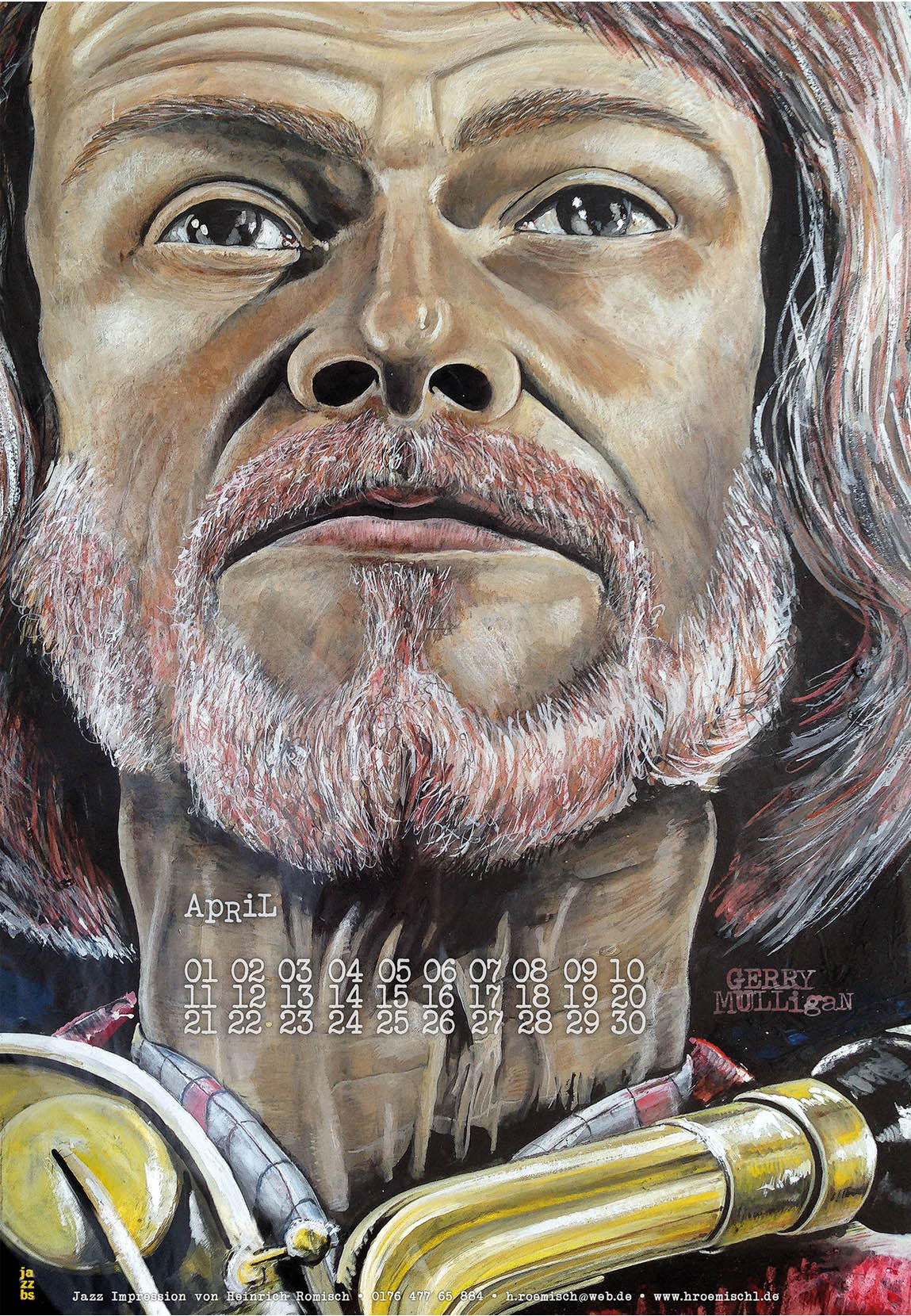 Im Monat April in meinem aktuellen Kalender „12*M“ wird Gerry Mulligan vorgestellt. Weltbekannt wurde der Baritonsaxophonist Anfang 50er Jahre als Vertreter des Cool Jazz.